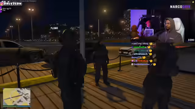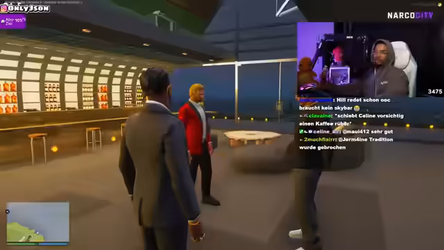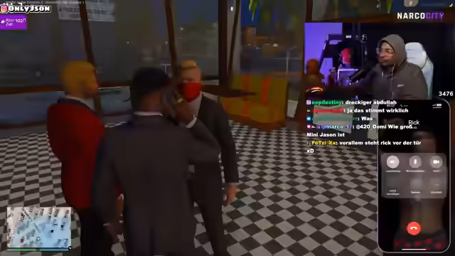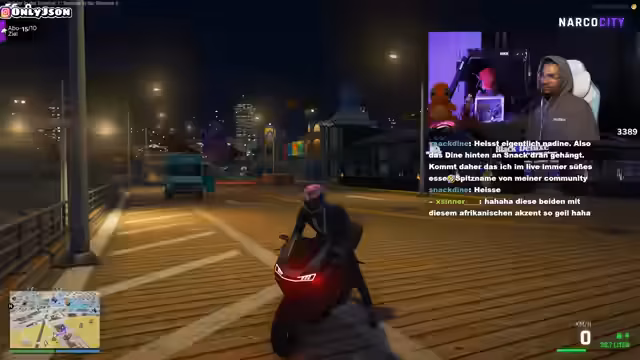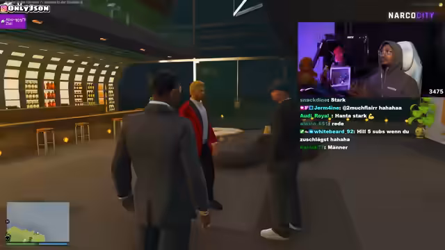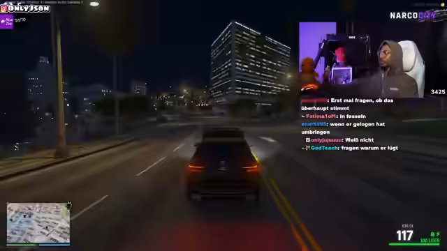 04:49:50Der Stream zeigt eine angespannte Straßenszene in Narko City, in der mehrere Charaktere involviert sind. Es kommt zu einer Konfrontation, bei der eine Person gefesselt und mit Tabletten bedroht wird. Der Streamer versucht, die Situation zu moderieren und fordert die Beteiligten auf, sich zu beruhigen. Die Atmosphäre ist aggressiv und von Misstrauen geprägt, wobei mehrere Personen versuchten, die Oberhand zu gewinnen und andere zu provozieren.