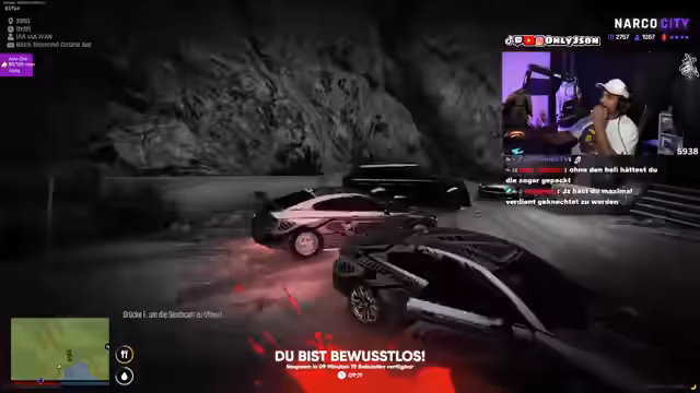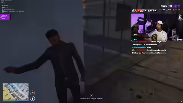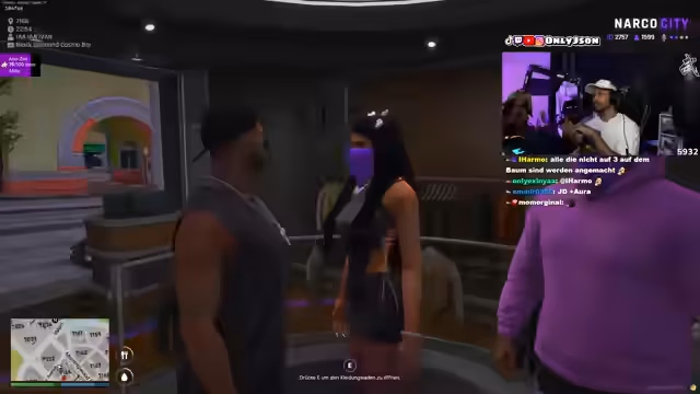 04:20:54Der Streamer wird in eine unerwartete Konfrontation mit einer Frau namens Vanessa Wutz verwickelt, die ihn an eine frühere, unangenehme Begegnung mit Santana und seinem Bruder erinnert. Er bestreitet die Anschuldigungen vehement und ist sichtlich irritiert über die absurde Behauptung, jemandem in den Mund gekackt zu haben. Kurz darauf erkennt er Vanessa als eine Person aus seinem Bekanntenkreis wieder, die für ihre fragwürdigen Aktivitäten bekannt ist. Inmitten dieser Verwirrung wird er von James angesprochen, der ihn aus einer schwierigen Situation befreien möchte. Der Streamer lehnt jedoch ab und betont, dass er die Realität noch nicht vollständig erfasst habe, während James ihn vor den Konsequenzen seines Handelns warnt. Trotz der Spannungen verspricht James, ihn vorerst in Ruhe zu lassen, fordert aber, dass der Streamer seine Situation ernst nimmt.