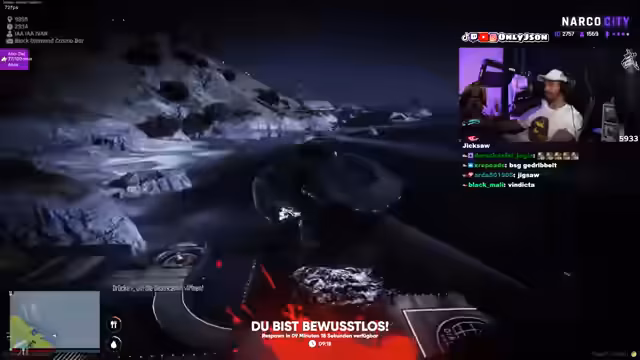 03:08:16Kurz nach den Drohungen an Jigsaw und Caravelli kommt es zu einem plötzlichen Angriff. Der Streamer wird von einem unbekannten Gegner abgeschossen, verliert seine Westen und fühlt sich 'gefickt'. Es stellt sich heraus, dass es sich um einen Angriff aus der Luft handelt, möglicherweise durch Flugzeuge. Diamond, der ebenfalls involviert ist, wird gefangen genommen und muss um seine Freilassung bitten. Die Situation ist chaotisch, da die Samurai gleichzeitig die Küste angreifen. Der Streamer schwört Rache an den Angreifern und betont, dass er sie 'ficken' werde. Er wird als Geisel genommen und beschuldigt, mit dem Angriff in Verbindung zu stehen, was er vehement bestreitet.