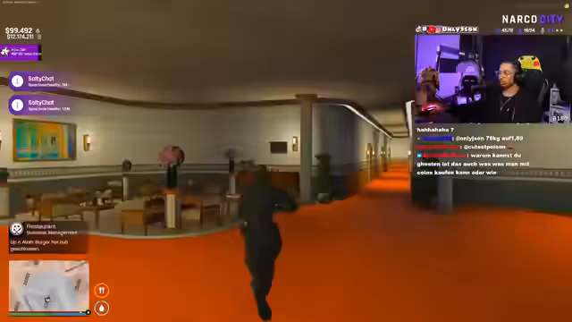 01:22:15Nachdem das Spiel wieder stabil läuft, will der Streamer seine Schwester Melissa nach Hause fahren. Er erfährt jedoch, dass in seiner Villa eine Party stattgefunden hat und sie stattdessen aufräumen soll. Er kontaktet seinen Kontakt "Oster", um für Melissa eine bezahlte Arbeit für die nächsten zwei Tage zu organisieren, da sie den Militärdienst erst am Samstag antreten kann. Der Streamer ist frustriert über die Situation und macht Melissa klar, dass er sie zur Arbeit zwingen wird.
