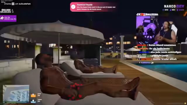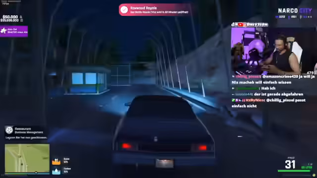 04:18:52Nach einer turbulenten Nacht im Casino, in der er viel Geld verliert, diskutiert der Streamer eine Zusammenarbeit mit Bane. Dieser plant, die ungenutzte Fläche hinter dem Casino für illegale Pferderennen zu nutzen. Das Konzept sieht vor, dass Spieler auf Pferde setzen können, deren Wert und Leistung durch Investitionen verbessert werden können. Dies soll eine Alternative zum Casino für spielsüchtige Spieler bieten und auf geteilten 50-50-Basis laufen. Nebenbei gibt es auch Pläne für Kooperationen mit Hooligans, während die Person gleichzeitig unter Druck steht.