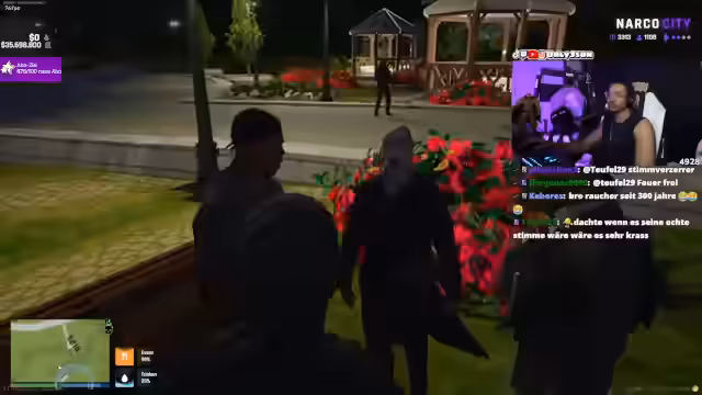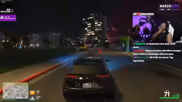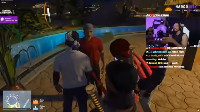 06:17:52Nach der finanziellen Katastrophe im Casino sucht ein anderer Spieler namens Pi den Streamer auf, um ihn zu verprügeln und 20.000 Dollar zurückzufordern. Es entsteht eine hitzige Auseinandersetzung, die in eine Verfolgungsjagd mündet. Dabei wird ein Auto des Streamers beschädigt. Der Streamer fordert später seinen Freund Mowgli auf, Pi zu verfolgen, was zu einem bewaffneten Konflikt und mehreren Schüssen auf Pis Fahrzeug führt, das schließlich 'komplett voll gemacht' wird.