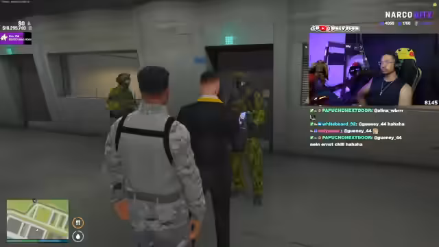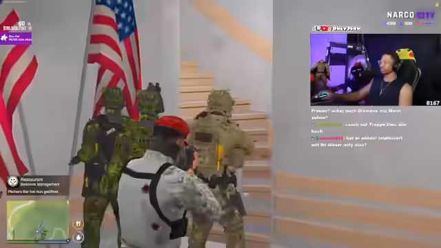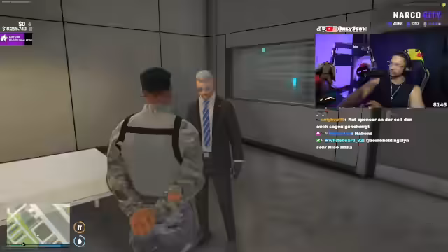 00:23:02Ein Gespräch mit dem Charakter Hunter enthüllt, dass der Charakter Jigsaw (Mr. Kramer) einem Attentat zum Opfer fallen soll. Gleichzeitig kursieren Gerüchte über eine aggressive Gruppe namens SGF, die als Gefahr für die Stadt wahrgenommen wird. Der Streamer in seiner Rolle als FIB-Agent unternimmt konkrete Schritte, indem er sich mit dem Gouverneur Spencer abstimmt und um die offizielle Genehmigung für eine Razzia bei der SGF-Familie bittet, um einer Eskalation zuvorzukommen.