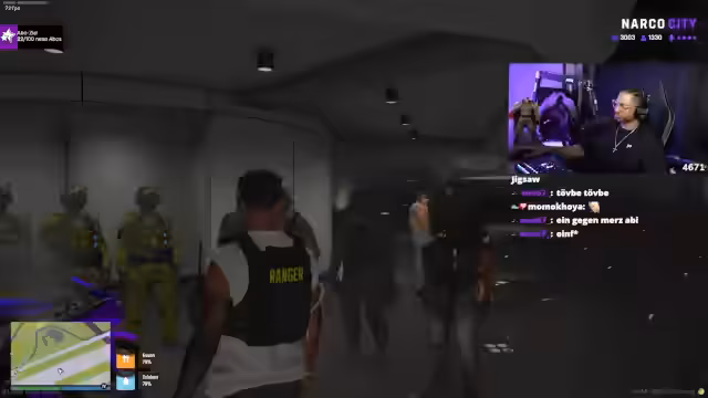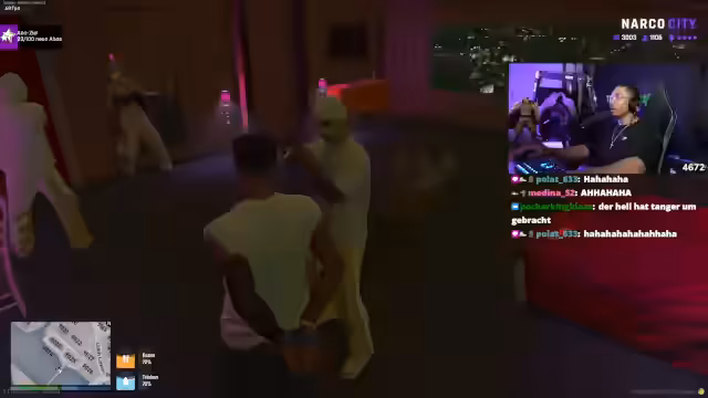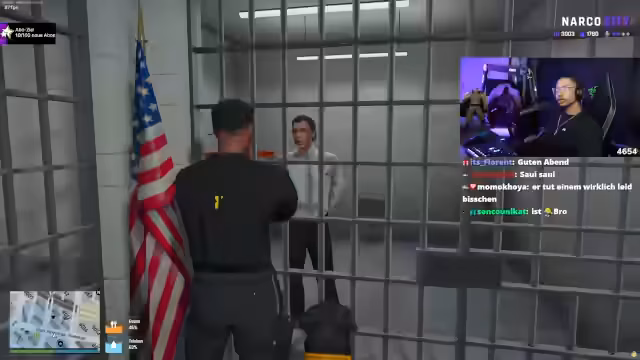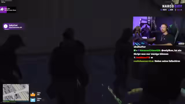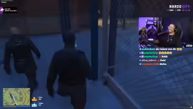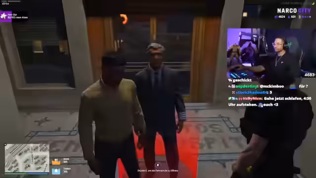 00:16:46Der Streamer wechselt zum Thema NARCO CITY, einem virtuellen Spiel. Er interagiert mit anderen Spielern, die gefälschte Kennzeichen verkaufen wollen. Dabei kommt es zu einem unterhaltsamen Szenario, in dem der Streamer als undercover bei der Polizei auftritt, um einen Verdächtigen festzunehmen. Die Szene ist voller unerwarteter Wendungen und humorvoller Dialoge.