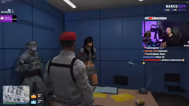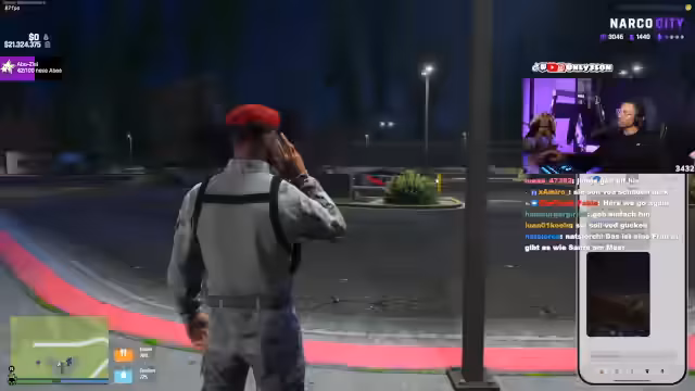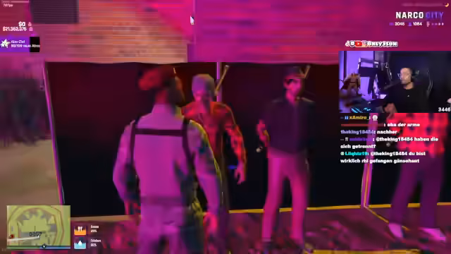 00:40:15Der Streamer reist mit seiner Frau auf die Insel, um ein Fest zu besuchen. Vor dem Eingang kommt es zu einem Zwischenfall an der Grenzkontrolle, bei dem sein Ansehen verweigert wird und der Eingangspfiff nicht bezahlt werden soll. Dies führt zu einem Streit mit dem Wachpersonal und den Besuchern. Die Situation eskaliert verbal, und der Streit dreht sich um das Recht, die Insel betreten zu dürfen.