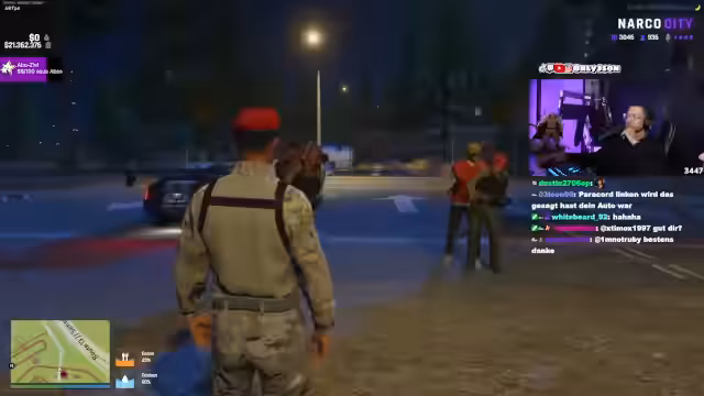 05:50:35Bei der Konfrontation mit einem Bürger der Stadt entsteht ein kultureller Konflikt, bei dem es um eine falsche Identität und fehlende Papiere geht. Das Gespräch eskaliert schnell zu einem verbalen Schlagabtausch, bei dem es um Rassismusvorwürfe und persönliche Beleidigungen geht. Die Situation spitzt sich derart zu, dass der Streamer den anderen Bürger als 'Rassist' bezeichnet und eine weitere Eskalation befürchtet.