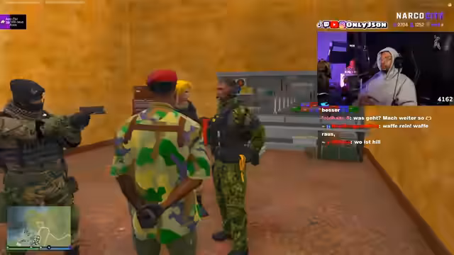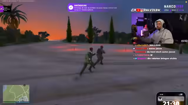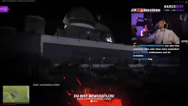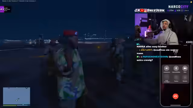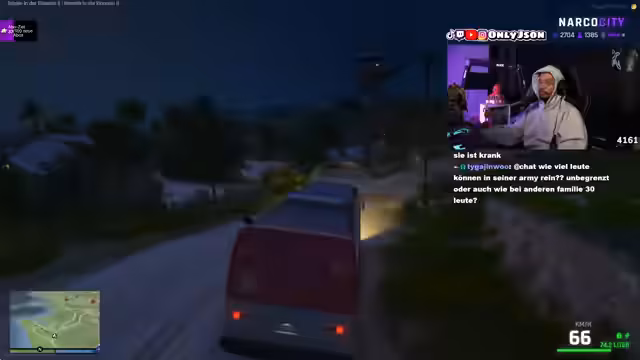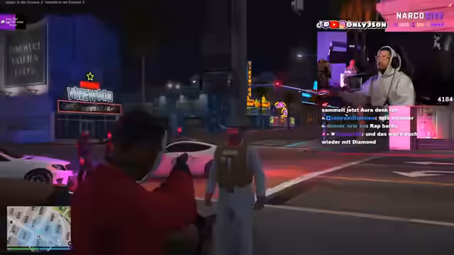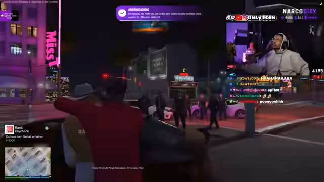 04:22:28Der Streamer drückt seine Orientierungslosigkeit in NarkoCity aus und scherzt darüber, einen Doktortitel in der Stadt haben zu müssen, um sich zurechtzufinden. Er stellt fest, dass dieser Zustand für seine Zuschauer nichts Neues sei. Anschließend begrüßt er eine lange Liste von Zuschauern, die um 0:40 Uhr noch aktiv sind, darunter Namen wie Team Ox, Dennis, Oxcore, Silini, Kenji, Gent, Baran, Murat, Saura, Steilerin, Hayati, Spitz, Leon, Bosslady, Basti, Maurice, Joel, Miguel, Max, Jack Alvarez, Ricardo, Edge, Keck, Only Max, Massimo, Little Mini Me, Saure Gurke, Ryan Taisy, Khan, Leonardo und Not That Kevin. Er bedankt sich bei ihnen für ihre Anwesenheit und Unterstützung.