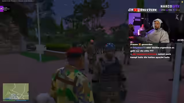 00:14:27Der Streamer entdeckt die neuen Möglichkeiten, die der 12er-Rang im Spiel bietet, insbesondere in Bezug auf Fahrzeuge und Ausrüstung. Er ist begeistert von der Auswahl an Helikoptern wie dem Winky, Maverick und Huey sowie dem Savage und Cargo Buff. Besonders hervorgehoben wird der „Black Pigeon“, ein Blackhawk-ähnlicher Helikopter, der Platz für 14 Personen bietet. Auch gepanzerte Fahrzeuge wie der Half-Track in Grün werden positiv aufgenommen. Ein besonderer Dank geht an „Franz“, der diese Fahrzeuge vor dem Live-Stream implementiert hat. Es wird angekündigt, dass nach einem Neustart des Servers die Waffen der Soldaten unendlich Munition haben werden, was zukünftige Schlachten erleichtern soll. Der Streamer plant, sich einen Helikopter zu kaufen, stößt jedoch auf ein Problem mit fehlenden 5.000 Dollar und der Abwesenheit eines Bankautomaten, was zu humorvollen Interaktionen mit einem Troll führt, der ihn verarscht.