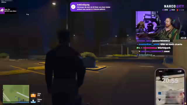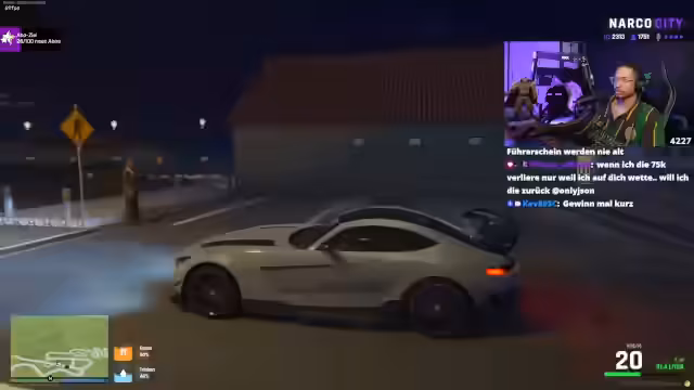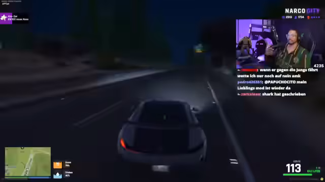 03:55:29Der Streamer wechselt in das RP-Geschehen und zeigt sich begeistert von der 1000er Zuschauerzahl auf dem Server. Er möchte Freunde verarschen und Psycho-RP betreiben. Dabei kommt es zu technischen Problemen mit der Kamera, die jedoch behoben wird. Der Streamer beginnt, verschiedene Rollen und Charaktere zu spielen und interagiert mit anderen Spielern im Chat.