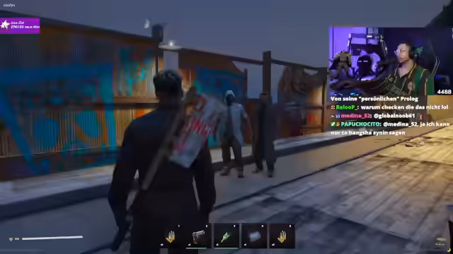10:53:34Der Streamer wird in der Stadt von einem anderen Spieler angegriffen, was zu einer hektischen Schießerei führt. Er muss sich verteidigen und wird dabei verwundet. Nachdem er den Angriff überlebt hat, versucht er, die Täter zu finden und Loot von ihnen zu sammeln, was wiederum zu neuen Konflikten führt.