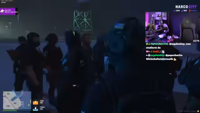 02:24:34Der Stream beginnt mit der Landung eines Hubschraubers auf einem Dach bei Koordinaten 7.16. Die Gruppe versucht, den Helikopter sicher zu parken, während sie mit gegnerischen Kräften konfrontiert werden. Es kommt zu einem chaotischen Austausch, bei dem die Teammitglieder unter Feuer geraten und sich in eine Lagerhalle zurückziehen müssen. Der Helikopter wird erneut über der Position der Gruppe gesichtet, was zu erhöhter Alarmstärke führt.