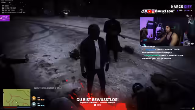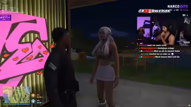 03:56:33Der Streamer wird von Laker, dem Freund von Rihanna, konfrontiert, der ihn beschuldigt, sich an Rihanna herangemacht zu haben. Es kommt zu einer verbalen Auseinandersetzung, die in einer Drohung von Laker endet, sich auf der Straße zu treffen und zu schießen. Der Streamer zwingt Rihanna daraufhin, ein Video aufzunehmen, in dem sie sich für die Taten von Laker entschuldigt und ihn als 'Bitch' bezeichnet. Dieses Video soll als Beweis dienen und Laker demütigen. Die Situation eskaliert weiter, als der Streamer beschließt, sich mit Emily um einen Stalker zu kümmern, der ihm ständig Bilder schickt.
