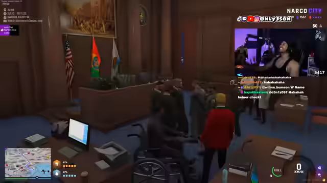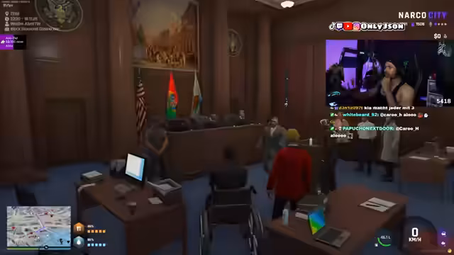 01:30:28Die Klägerpartei stimmt einer Vertagung zu, möchte aber die Befragung des Zeugen noch beenden. Mr. Big Booty Bam Bam wird weiter befragt und behauptet, Mr. Diamond habe seine Mutter im Club kennengelernt, indem er sich als berühmter Schauspieler und Staatsbeamter ausgab. Er nennt Filme wie 'Black Hawk Down' und 'Drei Engel für James Cook'. Die Glaubwürdigkeit des Zeugen wird erneut in Frage gestellt, insbesondere als er angibt, hauptberuflich Junkie zu sein. Die Verhandlung wird schließlich vertagt, und die Gruppe um den Streamer bereitet sich auf eine bevorstehende Operation vor, bei der eine Route verbrannt werden soll. Es wird über die Auswahl des Fahrers, die Notwendigkeit von Brandbeschleunigern und die Vertrauenswürdigkeit der Beteiligten diskutiert, insbesondere von Giro, der die Route verbrennen soll. Die Gruppe plant, unauffällig vorzugehen und sich darauf vorzubereiten, die Route schnell und präzise zu verbrennen.