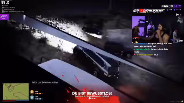 05:47:33Nach der chaotischen Flucht wird Emily eine Fahrprüfung auferlegt: Sie muss mit Fullspeed nach Hause fahren, ohne einen Unfall zu bauen, um ein Geschenk zu erhalten. Trotz anfänglicher Schwierigkeiten und der rauchenden Motoren des Fahrzeugs schafft sie es, das Auto sicher in der Garage zu parken. Der Streamer lobt ihre Leistung und erklärt sie zum Fahrlehrer. Anschließend werden Gesundheitstipps ausgetauscht, da der Streamer sich nicht wohlfühlt. Der Stream endet mit einem "Community-Talk-Chat", in dem die Zuschauer zum gemeinsamen Austausch eingeladen werden, und der Ankündigung, dass der Streamer am nächsten Tag wieder live sein wird. Diese abschließende Sequenz verbindet Humor, persönliche Interaktion und einen Ausblick auf zukünftige Inhalte.