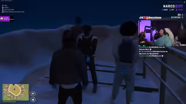 05:19:14Der Stream beginnt mit einer angespannten Situation, in der JJ als Geisel gehalten wird. Der Konflikt dreht sich um die Bestie-Beziehung von JJ und Melissa, wobei Diamond versucht, die Situation zu klären und JJ zur Rückkehr zu bewegen. Die Spannung steigt, als Drohungen ausgesprochen werden und Diamond deutlich macht, dass JJ nicht gehen darf, bis die Angelegenheit geklärt ist. Der Fokus liegt auf dem Versuch, JJ zur Vernunft zu bringen und ihn aus der Gefahrenzone zu holen, was jedoch auf Widerstand stößt.