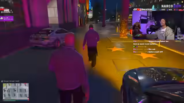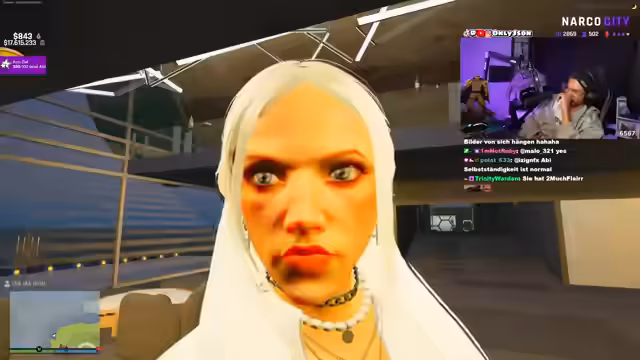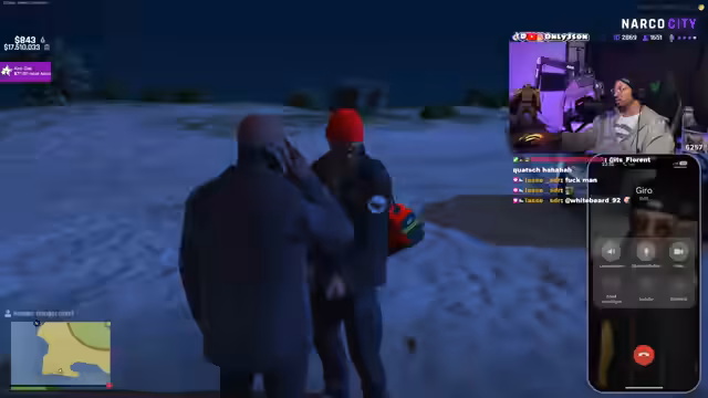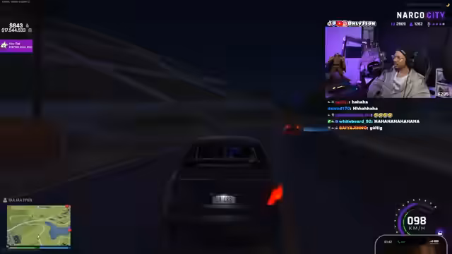 05:16:50Eine aufgeregte Verfolgungsjagd beginnt, nachdem der Streamer und sein Gefährte Diamond bemerken, dass sie verfolgt werden. Sie suchen panisch nach einem Versteck und einem Helikopter für eine Flucht. Die Situation wird als extrem stressig und gefährlich beschrieben, als sie versuchen, den Verfolgern in einem Auto zu entkommen und gleichzeitig nach Hilfe rufen.
