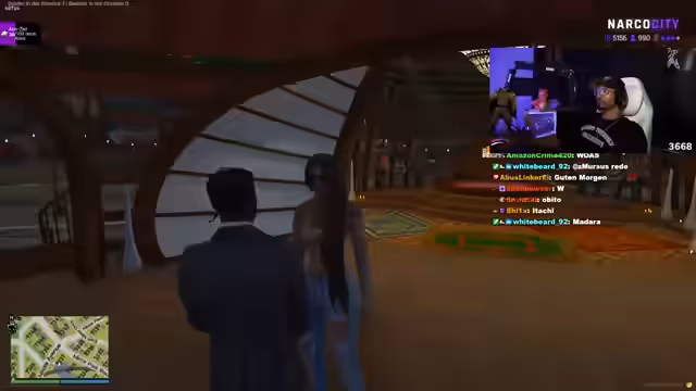 03:45:44Der Streamer führt die Dame durch seine luxuriöse Villa und zeigt verschiedene Räume, darunter ein Arbeitszimmer mit Waffen. Anschließend erzählt er eine persönliche, tragische Hintergrundgeschichte über seine Flucht aus seinem Heimatland, um ein besseres Leben für seine Familie zu finden, wobei ein Mann mit einem Hut und einer politischen Partei eine wichtige Rolle spielte. Zum Abschluss werden zusätzliche Räume wie ein Gästezimmer und ein Bereich mit Aussicht auf den Swimmingpool gezeigt.