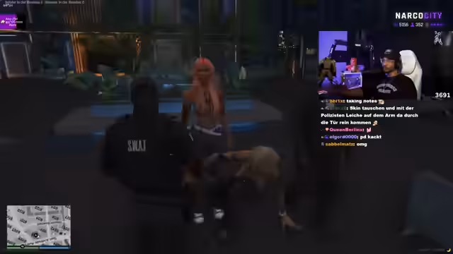 01:45:32Der Streamer initiiert einen Auftragsmord gegen eine Person namens Jackson. Er beauftragt Isabella, den Mord auszuführen, und verspricht ihr eine hohe Bezahlung. Parallel dazu flirtet er mit Chat-Mitgliedern wie Ginevra und Double B, was zu Verwirrung und komischen Dialogen führt. Diese Vorfälle zeigen die kriminellen und persönlichen Verflechtungen innerhalb des Streams.