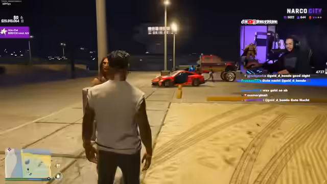 03:28:05Eine Konfrontation mit der rivalisierenden SGF-Gang eskaliert. Der Streamer und sein Beg Ray werden aufgefordert, sich zu ergeben. In einer privaten Unterhaltung mit Ray werden deren wahren Gefühle offenbart. Sie erwähnt eine verbotene Liebe, in der der Streamer sie nicht als 'Baller', sondern als Person behandelt hat. Es kündigt sich eine wichtige Entscheidung für Ray an.