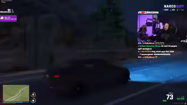 01:34:18Ein schwerer Schusswechsel ereignet sich, bei dem der Streamer und sein Begleiter von der rivalisierenden Gruppe angegriffen werden. Sie können mit einem Auto fliehen, werden jedoch verfolgt und dabei beschossen. Im weiteren Verlauf wird das Fahrzeug stark beschädigt. Ein Auftragsmörder namens Ivan rettet den Streamer und fährt ihn zu seiner geschützten Unterkunft.