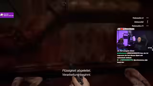 05:02:11Der Stream wechselt das Genre und beginnt mit einem Horror-Rollenspiel, spezifisch Resident Evil. Der Streamer agiert als Charakter namens Scarlet und steckt in einem Hochsicherheitskomplex fest. Die Hauptaufgabe ist es, ein Mädchen zu retten, das von einem Monster gejagt wird. Dabei muss er Rätsel lösen, Stromkreise unterbrechen und Gegenstände wie Verbindungsstecker und einen Gabelstaplerschlüssel finden, um weiterzukommen. Es kommt zu intensiven Auseinandersetzungen mit Monstern und einer dramatischen Jagd durch die Gänge des Gebäudes.