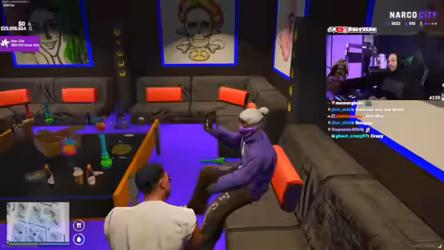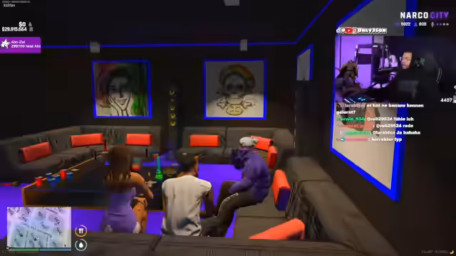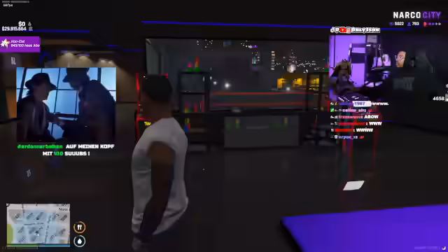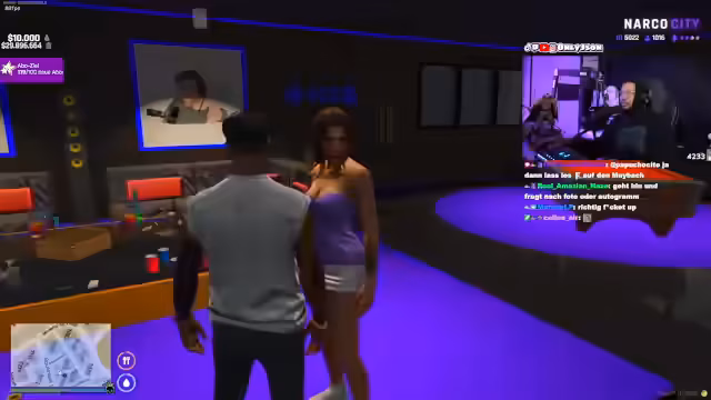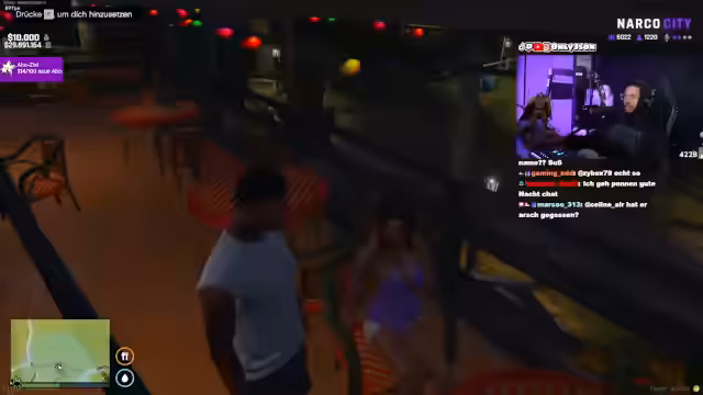 00:36:53Nachdem der technische Notstand vorbei war, konzentrierte sich der Streamer wieder auf das Rollenspiel in Narko City. Er begann ein Date mit einer Frau namens Rhi, das im 'Vellis Restaurant' stattfand. Dabei wurde er von seiner Schwester Melissa gestört, die ihm mitteilte, dass seine Beziehung zu Rhi auf den Widerstand von Sana, dem Anführer der Ballers, stoßen würde und potenziell gefährlich sein könnte.