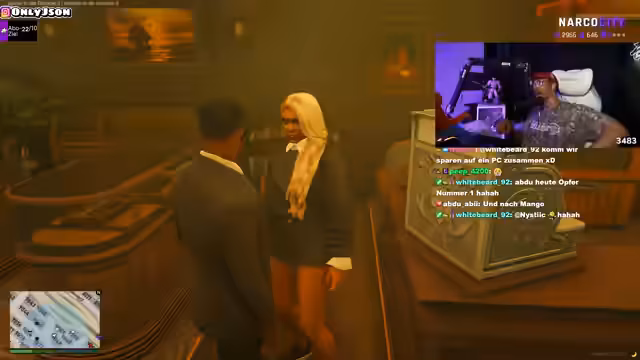 02:41:42Es wird kritisiert, dass zu schnell geschossen wurde und kein Ausweg gelassen wurde. Es wird erwähnt, dass man sich mit Mr. Coleman treffen muss. Es gibt eine Diskussion über einen Verlust von 500.000 Dollar im Casino und die Ankunft von Agent Hades. Es wird die Frage aufgeworfen, ob man der gefolterten Frau mehr Möglichkeiten hätte geben sollen. Es folgt eine Diskussion darüber, warum direkt geschossen wurde und die Aussage, dass man programmiert sei, jeden Befehl auszuführen. Es wird ein neuer Sound erwähnt und der Plan, sich zivil zu kleiden. Mr. Diamond erhält einen Anruf von Mr. Falkentanga, der ein dringendes Treffen fordert. Es wird ein Gespräch über ein Treffen mit Falkenbär geführt, um Fliegen zu schließen, und die Überforderung durch verschiedene Seiten wird thematisiert. Es stellt sich heraus, dass unbefugte Personen den Laden betreten haben. Es wird über DJ-Polt und einen Raid gesprochen sowie die Ankunft von Mr. Coleman erwartet.