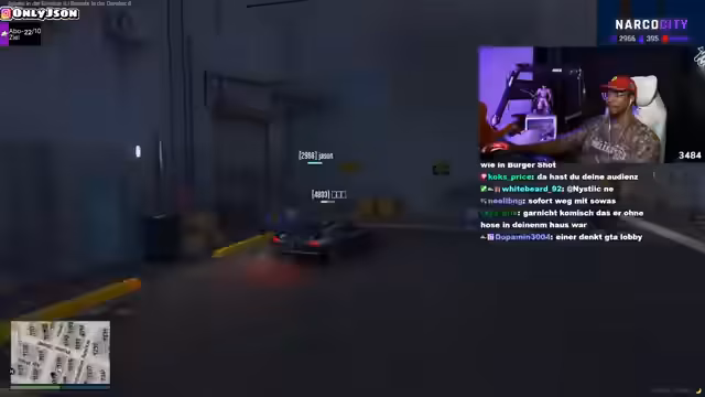 00:41:13Der Streamer sucht nach seiner Mutter Ufoma und fragt, ob sie als Geisel genommen wurde. Es stellt sich heraus, dass Ufoma tatsächlich in einer Geiselnahme ist. Die Polizei umstellt das Gebiet und bereitet sich auf einen Einsatz vor. Der Streamer äußert seinen Unmut über die rassistische Vorgehensweise der Polizei. Ein Verdächtiger flieht in einem grauen Atlas. Der Streamer ist verzweifelt und besorgt um seine Mutter. Später wird Liz in die Situation involviert, als sie und der Streamer von Falkenberg entführt werden. Es kommt zu einer Verfolgungsjagd und Schießerei, bei der der Streamer mehrmals stirbt. Er beschließt, sich eine neue SIM-Karte zu besorgen, um nicht mehr verfolgt zu werden. Liz und der Streamer werden gefangen genommen und gefoltert. Die Entführer gehören zu Vindicta und wollen eine Botschaft an das PD übermitteln.
