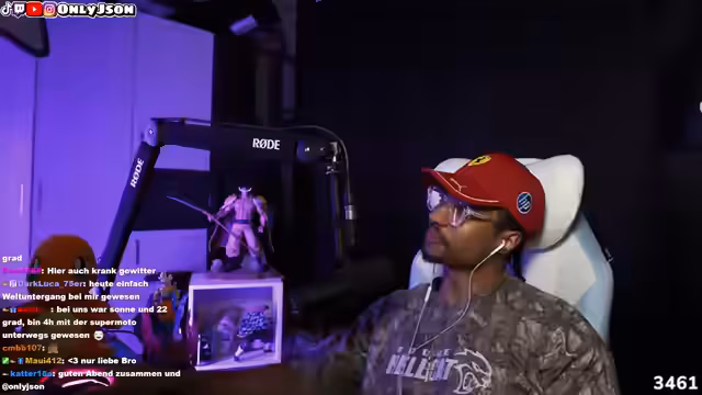 00:02:56Der Streamer begrüßt die Zuschauer und fragt nach ihrem Tag. Es wird über das Wetter gesprochen, wobei einige Zuschauer von Sonnenschein berichten, während es beim Streamer gewittert. Ein Zuschauer erzählt von einem vierstündigen Ausflug mit seiner Mutter bei gutem Wetter. Der Streamer berichtet, dass er sehr lange geschlafen hat und sich fragt, ob er überhaupt live gehen soll. Er erwähnt eine Demon Slayer-Figur, die er auf der Gamescom gekauft hat. Auf die Frage, wie er sich nach dem langen Schlaf fühlt, antwortet er normal. Er erzählt, dass er das Radio Not gestern gefeiert hat und sein Shirt von Hollister ist. Er verweist auf ein früheres Problem mit Kopfhörern und äußert, dass er sich keinen Hellcat kaufen wird, sondern eher eine Rostlaube als Erstwagen bevorzugt.