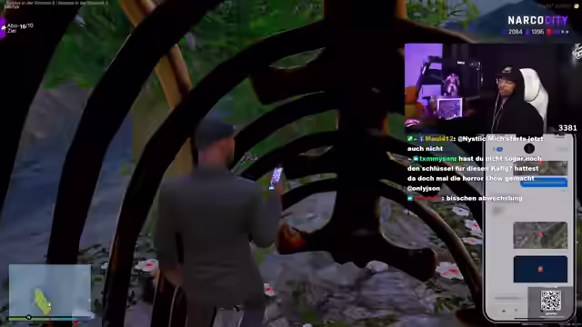 00:41:59Der Streamer interagiert mit einer Gang, die sich als wohlhabend präsentiert, aber dennoch Street-Aktivitäten nachgeht. Es wird über die Familie der Gang gesprochen und angedeutet, dass sie am Abend eine andere Seite zeigen. Der Streamer wird von der Gang entführt und mit einem Sack über dem Kopf auf eine Insel gebracht. Es stellt sich heraus, dass es sich um Hexenjäger handelt, die ihn für seine Sünden reinigen wollen. Der Streamer versucht, sich mit Siri zu helfen, indem er Nachrichten an Prinz schickt, um ihn über seine Geiselnahme und die Bomben auf der Insel zu informieren. Die Hexenjäger haben seinen Sound gestohlen und drohen ihm mit dem Death Note, in dem sein Name steht.