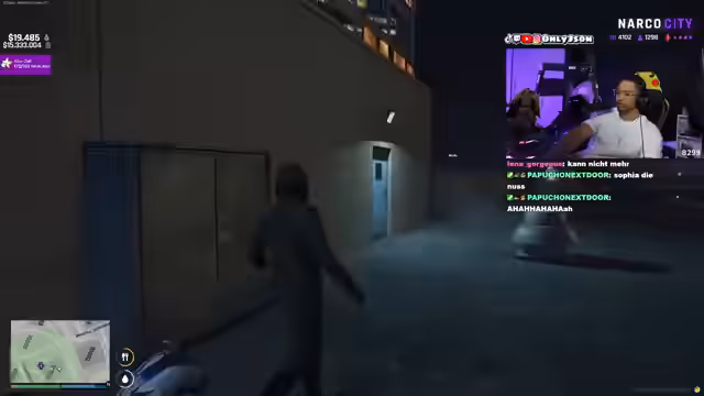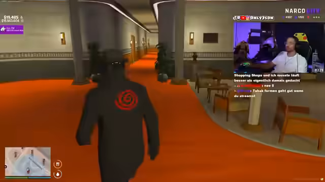 02:46:21Der Stream beginnt mit einem heftigen Dialog zwischen den Charakteren, bei dem Drohungen ausgetauscht werden und Geldforderungen gestellt werden. Anschließend konzentriert sich die Handlung auf die Ankunft beim Spiral Hotel. Die Protagonisten planen eine Landung auf dem obersten Dach des Gebäudes. Es kommt zu einem turbulenten und chaotischen Landeversuch, bei dem die Figuren unter Stress stehen und sich gegenseitig anfeuern, was zu einem unkontrollierten Absturz in die Hotellobby führt. Dort müssen sie sich mit dem Personal auseinandersetzen und versuchen, unauffällig zu bleiben.