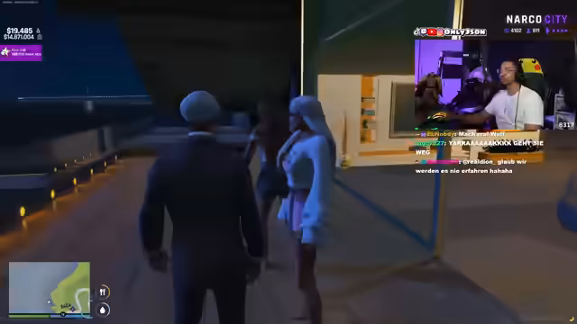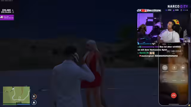 04:17:13Nach der angespannten Situation beim Juwelier wendet sich die Dynamik einer privaten, emotional aufgeladenen Familienkonfrontation zu. Der Streamer spricht eine Person namens Wissam und wechselnt zwischen verschiedenen Identitäten und Szenarien. Eine heftige Auseinandersetzung entbrennt mit einer Frau namens Melissa und einer Schwester, bei der es um Egoismen, Vertrauensbrüche und die Folgen eines Schussesgefechts geht. Es gibt Andeutungen von Geldsummen, die zur Versöhnung führen sollen, sowie einen Wechsel in türkische Sprachfetzen und Begrüßungsformeln, was einen plötzlichen Kontextwechsel markiert.