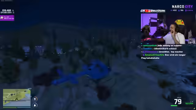 04:45:58Nachdem der Streamer seine Flugkünste bewiesen hat, stellt er sich selbst als 'Black Hammer' und 'Black Knight' dar und macht sich über seine Gegner lustig. Gleichzeitig mehren sich Anzeichen für einen Verrat im eigenen Team, da Hunter beschuldigt wird, Informationen an die gegnerische Familie Caravelli weitergegeben zu haben. Die Stimmung ist aggressiv und paranoide, und es droht ein Bruch innerhalb der Gruppe. Parallel werden reale Polizeieinsätze im virtuellen Raum gemeldet, bei denen Personen mit Helikoptern abgestürzt sein sollen, was zu einem erhöhten Einsatzaufkommen führt.