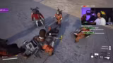 08:42:17Das versprochene 1-gegen-1-Duell zwischen der Gruppe und Freddy findet statt. Es wird klar, dass Freddy ein Komplize im Stream ist und die Interaktion inszeniert ist. Während des Duells, das mit 'Pick-Axten' geführt wird, sorgt die Gruppe für eine dramatische Inszenierung. Trotz seiner Niederlage wird Freddy von der Gruppe 'getötet', um die Rolle des unterlegenen Antagonisten zu spielen. Anschließend wird ein 'Defi' benutzt, um ihn wiederzubeleben, was den inszenierten Charakter der Aktion unterstreicht und für humorvolle Reaktionen im Chat sorgt.