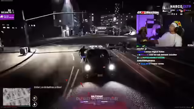 05:02:59Die Szene verlagert sich an den Zugang eines Casinos, wo Sicherheitspersonal den Zugang verweigert und spezifische Berechtigungen voraussetzt. Der Streamer äußert Verärgerung über die strikten Regeln und wird von jemandem namens Rayuna aufgefordert, den Lautsprecher auszuschalten. Dieser Vorfall führt zu einer Konfrontation und beleuchtet die bürokratischen Hürden und die rüde Kommunikation in diesem Umfeld.