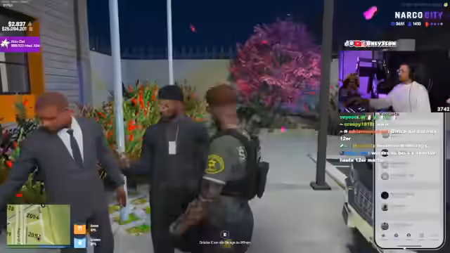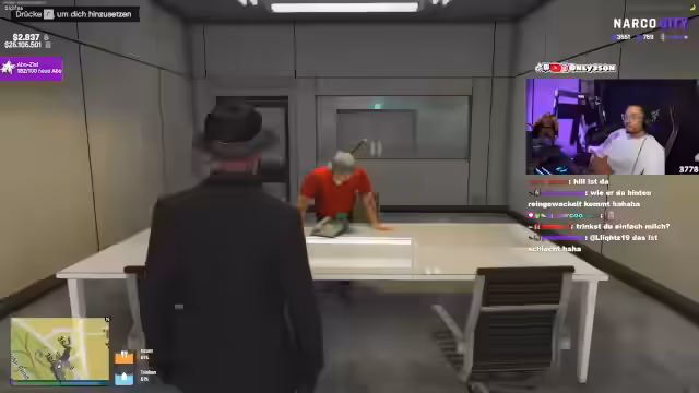 01:25:26Der Streamer, agierend als Regierungsführer James Diamond, wird mit einer internen Krise bei der Detective Unit (NCD) konfrontiert. Sein enger Vertrauter Chuck Hagel wurde vorübergehend suspendiert, da sein Name im Zusammenhang mit dem Syndikat Vendikta fällt, obwohl Diamond beteuert, nichts damit zu tun zu haben. Beamte des Sheriff Departments klären Diamond über den Vorfall auf: Chuck wurde aufgrund fehlenden Vertrauens vorläufig aus der Einheit entfernt. Diamond fordert Transparenz und versichert, sich persönlich um die Wiedereinsetzung seines loyalen Mitarbeiters zu kümmern.