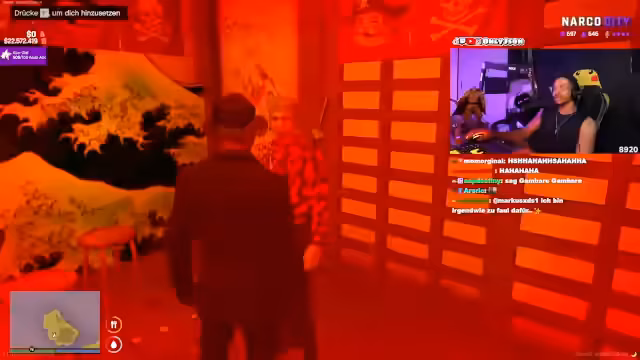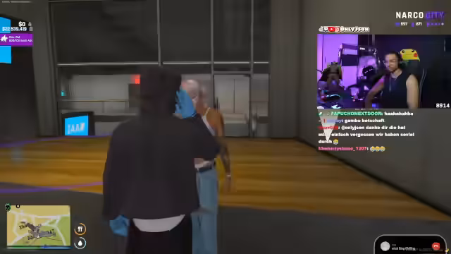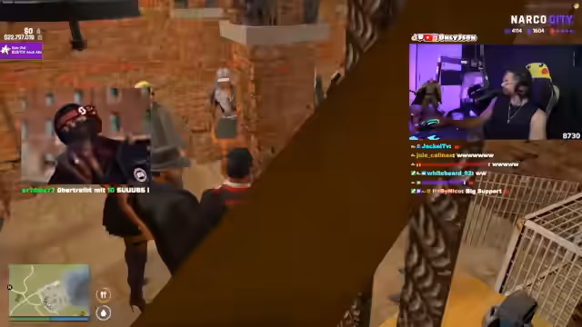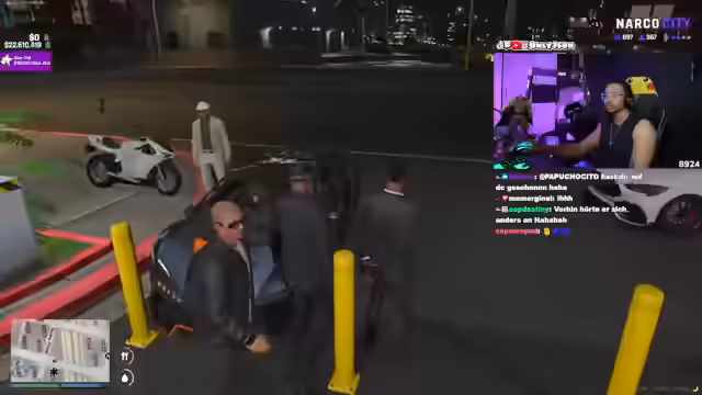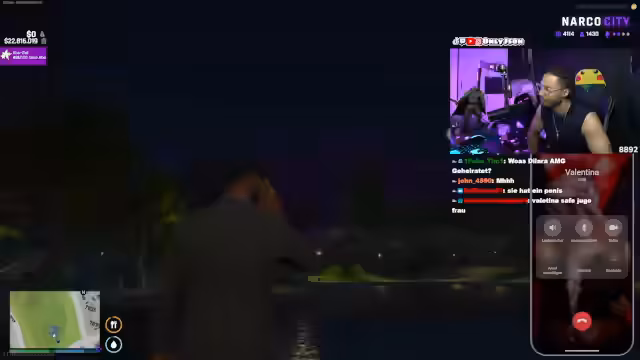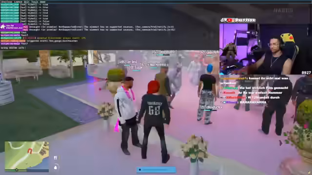 04:08:11Die Situation auf Cayo Perico spitzt sich zu, als der Streamer die Gruppe offen bedroht und der Ton extrem aggressiv wird. Er nennt Namen und droht mit den Konsequenzen, die den Rivalen bevorstehen, was zu einer offenen Konfrontation führt. Währenddessen versucht eine Person namens Xiao, einen Mediziner herbeizuholen, während der Streamer seine Macht demonstriert, indem er die Anwesenheit seiner Leute und seine Fähigkeit zur Einflussnahme unterstreicht. Die gesamte Szene wird von einem Klima der Gewalt und unmittelbarer Gefahr dominiert.