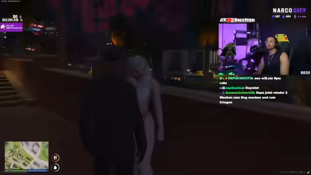 00:02:53Der Stream beginnt mit technischen Abfragen und Begrüßungen der Chat-Community. Der Streamer begrüßt namentlich zahlreiche Zuschauer und dankt für den anfänglichen Support, inklusive der ersten Subs direkt nach Start. Es wird ein Internetproblem des Streamers angesprochen, das den Stream dreimal unterbrach, was seine Motivation beeinträchtigt habe. Die Besonderheit des heutigen Streams in 'Narcocity' wird angekündigt, der Fokus liegt auf einem spezifischen Vorfall und der üblichen Action.