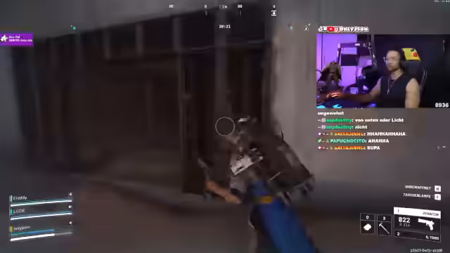 08:47:30Das Team koordiniert einen Angriff auf ein Gebäude, wobei der Streamer seine Kameraden deckt und von hinten angreift. Es kommt zu einer hektischen Situation, in der Gegner aus verschiedenen Richtungen schießen. Der Streamer versucht, seine Position zu halten, während sein Team nach vorne stürmt, um den Gegner auszuschalten.