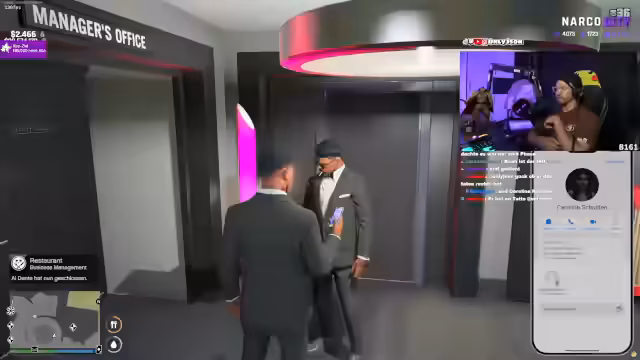00:10:34Eine Storyline beginnt mit einem Gespräch zwischen dem Streamer, der die Rolle des Casino-Besitzers Diamond spielt, und seinem Mitarbeiter Walter. Walter wird wegen anonymen Beschwerden angeklagt, Mitarbeiter zu taseren. Walter rechtfertigt seine Aktionen damit, dass es sich um respektlose Kunden handelte und betont, dass seine Vorgehensweise vertretbar war.
