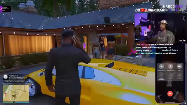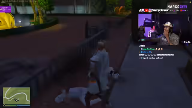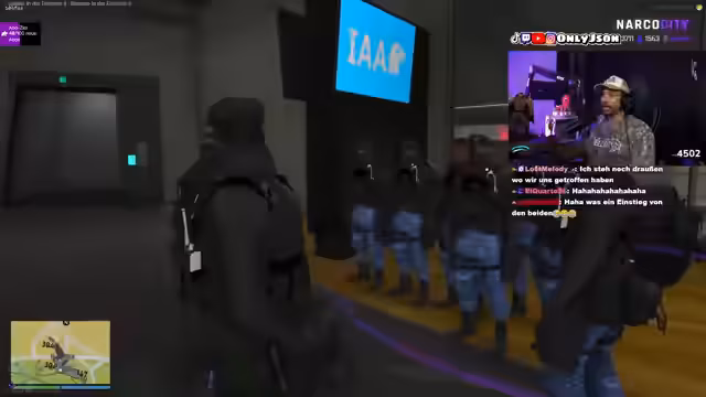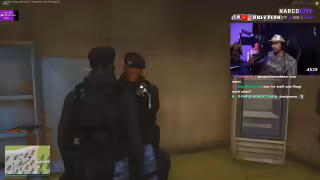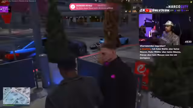 01:12:19Die Szene beginnt mit einem Dialog über den Kauf von Drogen, wobei der Protagonist 3-4 Kilo Gras für seine Familie benötigt. Nach einer kurzen Verhandlung über die Menge und die Übergabe der Ware, bei der der Protagonist seine Nummer an Marques James Diamond gibt, kommt es zu einer Verwechslung mit der Polizei. Es wird schnell klar, dass es sich um eine Rollenspiel-Situation handelt, in der es um Drogenhandel und das Vermeiden der Behörden geht. Die Charaktere bewegen sich durch die Stadt, um die Übergabe zu arrangieren und möglichen Verfolgern zu entgehen. Die Kommunikation ist hektisch und von Misstrauen geprägt, während sie versuchen, die Situation unter Kontrolle zu halten und die benötigten Mengen zu beschaffen. Die Interaktion mit anderen Charakteren, wie Eileen und Ranger Thundercock, lockert die angespannte Atmosphäre auf, bevor die Suche nach einer Rose zu weiteren Komplikationen führt.