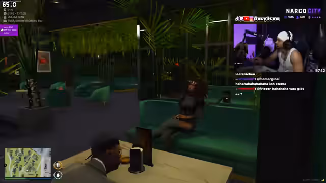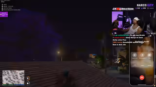 00:26:24Die Stimmung schlägt in eine Mission in Narco City um. Der Boss Kiflom, alias Schiolinski, soll für eine alte Schuld zur Rede gezogen und entführt werden. Das Team, bestehend aus dem Streamer, Diamond, Jersey und weiteren Personen, plant einen komplexen Plan, der darin besteht, Schiolinski aus dem Club zu locken und ihn dann abzufangen.