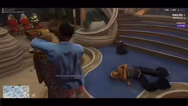 01:51:55Die Befreiungsmission eskaliert dramatisch und endet in einer Geiselnahme. Die drastische Übermacht der Gegner zwingt die Gruppe, vorerst aus dem Anwesen zu fliehen. In einer verzweifelten Aktion schleicht sich einer der Spieler als Medic zurück in das Anwesen, um dort unbemerkt die Lage zu sondieren. Er wird jedoch als Eindringling erkannt und festgehalten. Ein weiterer Spieler, Jersey, betritt die Szene und versucht, die Kontrolle über die Situation zu übernehmen, indem er einen Geiselnahme-Kommandanten bedroht und Forderungen stellt, was die Spannung weiter anheizt.