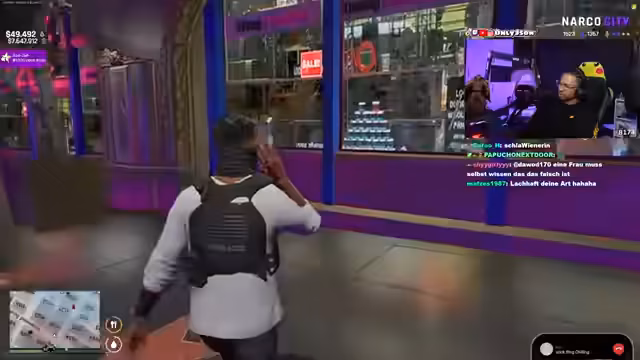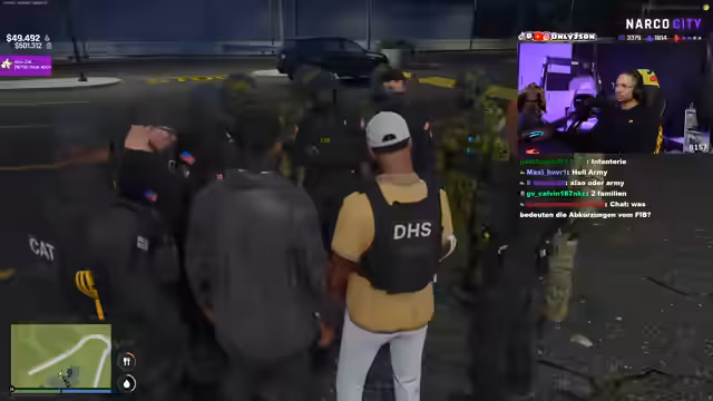03:56:48Ein Staatsbankraub wird von einer rivalisierenden Fraktion durchgeführt, was eine Verfolgung und Konfrontation auslöst. Der Streamer und seine Gruppe verfolgen die Räuber, interagieren mit der Polizei und diskutieren Strategien, um die Situation zu kontrollieren. Special Agent Coleman wird eingeführt, der versucht, die Sperrzone zu sichern. Die Szene beinhaltet Verhandlungen, Androhungen und einen chaotischen Ablauf, der die Dynamik des Rollenspiels hervorhebt, während technische Probleme ignoriert werden.