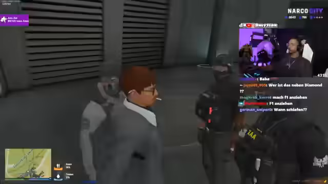 00:11:16Die Haupthandlung dreht sich um das kriminelle Milieu. Der Streamer, der die Rolle von 'Diamond' einnimmt, plant die Übergabe eines Gefangenen namens Giro an einen Vertreter der Familie namens Falkenberg. Es kommt zu Verhandlungen über einen Betrag von 1,5 Millionen Dollar. Gleichzeitig sind andere Parteien wie die Atomics und die Familie 'Block to Block' involviert, was zu einer komplexen Verschwörung und Verfolgungsjagd führt.