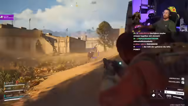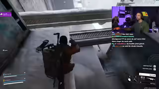10:39:01Der Fokus wechselt zur aktiven Spielsession, vermutlich in einem Battle-Royale- oder Team-Kampfspiel. Es entstehen Teamstrategien, Verfolgung von Gegnern und Diskussionen über Ausrüstung wie Waffen und Munition. Die Dynamik im Team wird deutlich, insbesondere als der Streamer und sein Teamkollege Jermaine gemeinsam kämpfen und sich über Loot und Taktiken austauschen. Dieser Teil zeigt die spielmechanische Interaktion und die teamorientierte Herangehensweise an das Spielgeschehen.