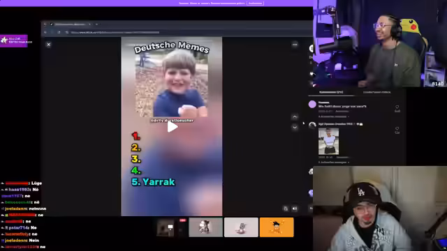 00:52:26Der Streamer plant eine 'Try Not To Laugh' Challenge mit Wasser im Mund, wo er und ein Gast (Rick) gegeneinander antreten. Sie diskutieren die Anzahl der Clips (20 ausgewählte Videos), die Strafen (15 Subs pro Gewinner) und die Regeln (kein Gesicht verziehen). Die Clips stammen größtenteils von Zuschauern und enthalten schwarzen Humor.