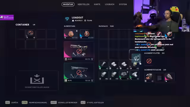09:43:51Die Session geht mit weiteren ARK-Runden weiter, wobei das Team versucht, aus einer ausgeschalteten Position wieder in den Turm einzudringen. Es werden Diskussionen über Loot-Qualität, Waffenausrüstung und Map-Strategie geführt. Die Spieler beobachten Gegner, planen Angriffe und tauschen sich über Ressourcenmangel aus. Dabei tauchen wiederum Konflikte auf, besonders wenn es um Extraktionspunkte und Hedge-Keys geht. Die Konversation wird begleitet von humorvollen Kommentaren des Chats und mäßigendem Verhalten der Moderatoren.