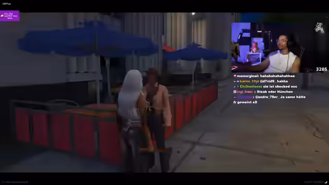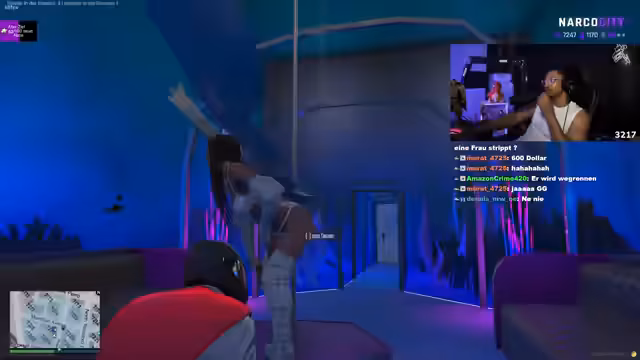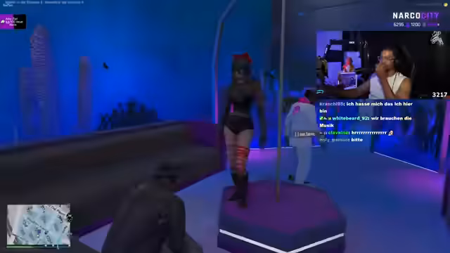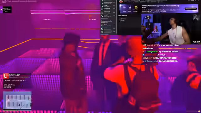 00:26:52Nach Serverproblemen wechselt der Streamer das Thema und präsentiert einen Club, den er als den besten im gesamten Staat bezeichnet. Mit dem Stream-Namen 'Rick Sanchez' reist er in einer Limousine dorthin. Es kommt zu Spannungen mit anderen Gästen, zu einem Dance-Battle und schließlich zu einem bewaffneten Konflikt, der zu einem Gefecht mit Waffen eskaliert.