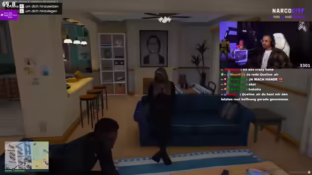 03:17:52Es beginnt mit einer Führung durch das Haus, wobei verschiedene Bereiche wie Küche, Bar und eine Gemütlichkeitsecke vorgestellt werden. Es wird betont, dass der Arbeitsbereich in Bezug auf die Küche und das Kochen gemeint ist, um Missverständnisse zu vermeiden. Der Außenbereich mit Pool wird hervorgehoben, gefolgt von der Präsentation einer Sammlung von Waffen. Es werden Geschichten zu einzelnen Waffen erzählt, darunter eine Sniper und ein Fallschirm aus Warzone, wobei letzterer zu einem ungewöhnlichen Angriffsmittel wurde. Anschließend wird der Fokus auf das Büro gelenkt, das mit einer Jukebox im 50er-Jahre-Stil ausgestattet ist. Weitere Details der Wohnung werden gezeigt, darunter eine Umkleidekabine und ein Boxspringbett. Ein Sofa wird als Alternative zur 'Flasche' zum Entspannen präsentiert. Die Dusche wird als etwas offen, aber gut befunden. Es folgt ein Gespräch über die Präferenz zwischen Dusche und Badewanne, wobei Baden bevorzugt wird. Der Rundgang endet mit der Andeutung einer Bestrafung, die aber spielerisch angedeutet wird.